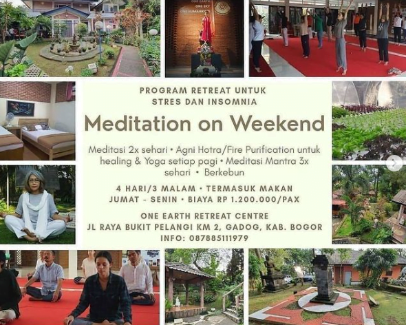Adalah One Earth Yoga & Meditation Retreat Centre yang menyelenggarakan Weekend Healing Retreat setiap akhir pekan. Pemulihan atau Healing untuk membersihkan/menghilangkan stres pikiran bukan dengan cara pergi wisata atau berkuliner. Keduanya dipastikan akan membengkakkan tagihan akhir bulan. Bukan hanya itu, bila kita tidak menyadari tentang hubungan kesehatan dań jenis makanan yang kita konsumsi, maka berbagai penyakit akan menyerang tubuh kita.
